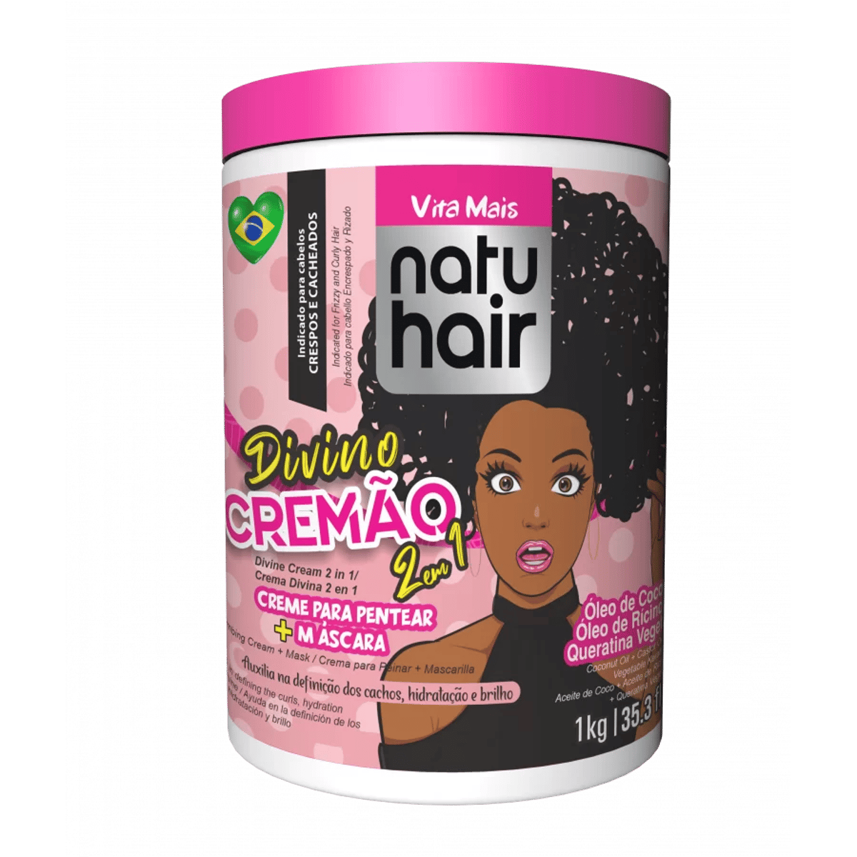 Chegou o produto que vai transformar a sua rotina capilar! O Natuhair Divino Cremão 2 em 1 (1kg) é perfeito para cabelos em transição, crespos e cacheados, atuando como creme de pentear e creme de hidratação. A sua fórmula rica em ativos milagrosos hidrata profundamente, define os cachos, nutre e elimina o frizz, deixando os cabelos prontos para arrasar em qualquer ocasião. Ideal para quem busca praticidade sem abrir mão de um cuidado completo.
